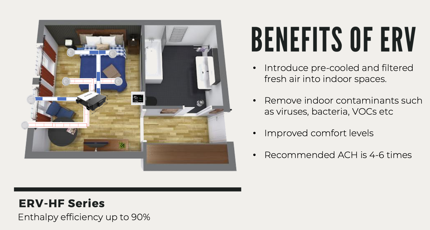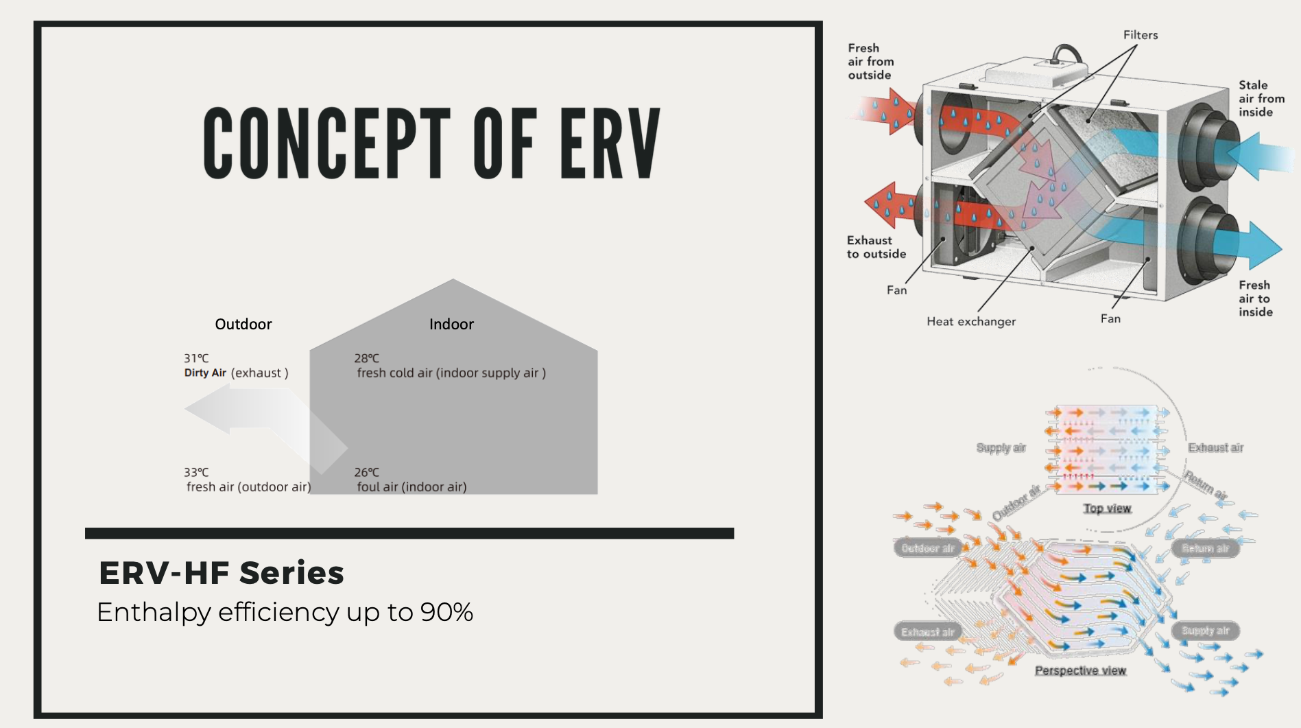 This ceiling-mounted horizontal unit isn’t simply a fan—it is an advanced ventilation system built to exchange